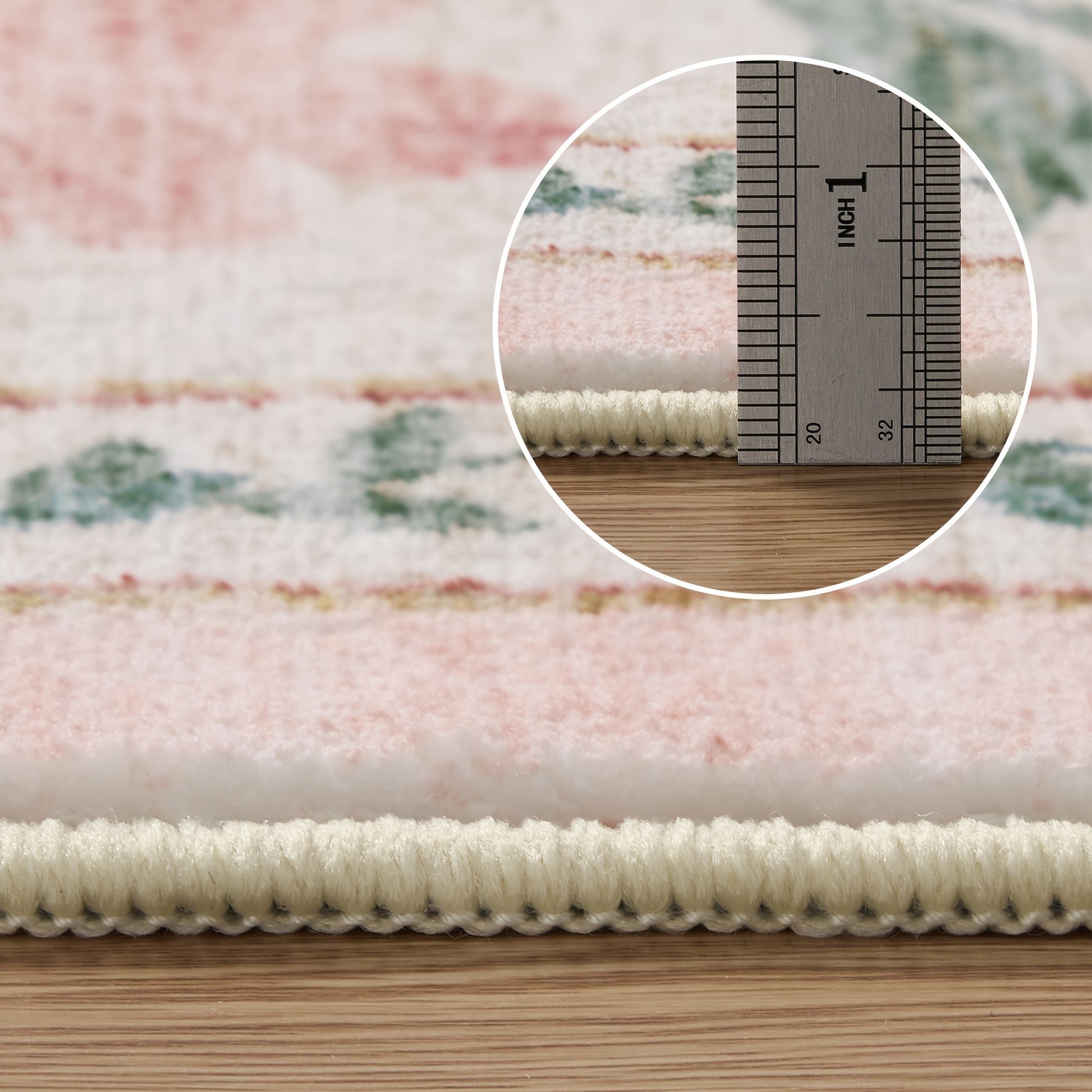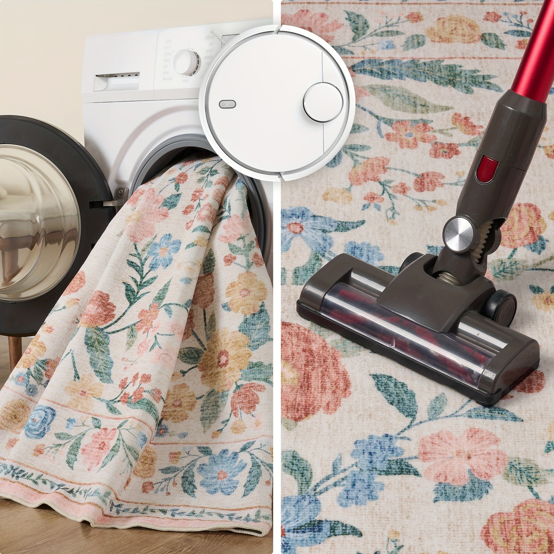 1pc Vintage Floral Mat - Non-Slip, Machine Washable Low Pile Runner for Kitchen, Living Room, Bedroom, Dining Room, Playroom - Boho Style 2x3 Entryway Mat, 2x6 Runner, 8x10 Large Area Indoor Mat - Kids & Pets Friendly In Beige, Green, Black & Pink