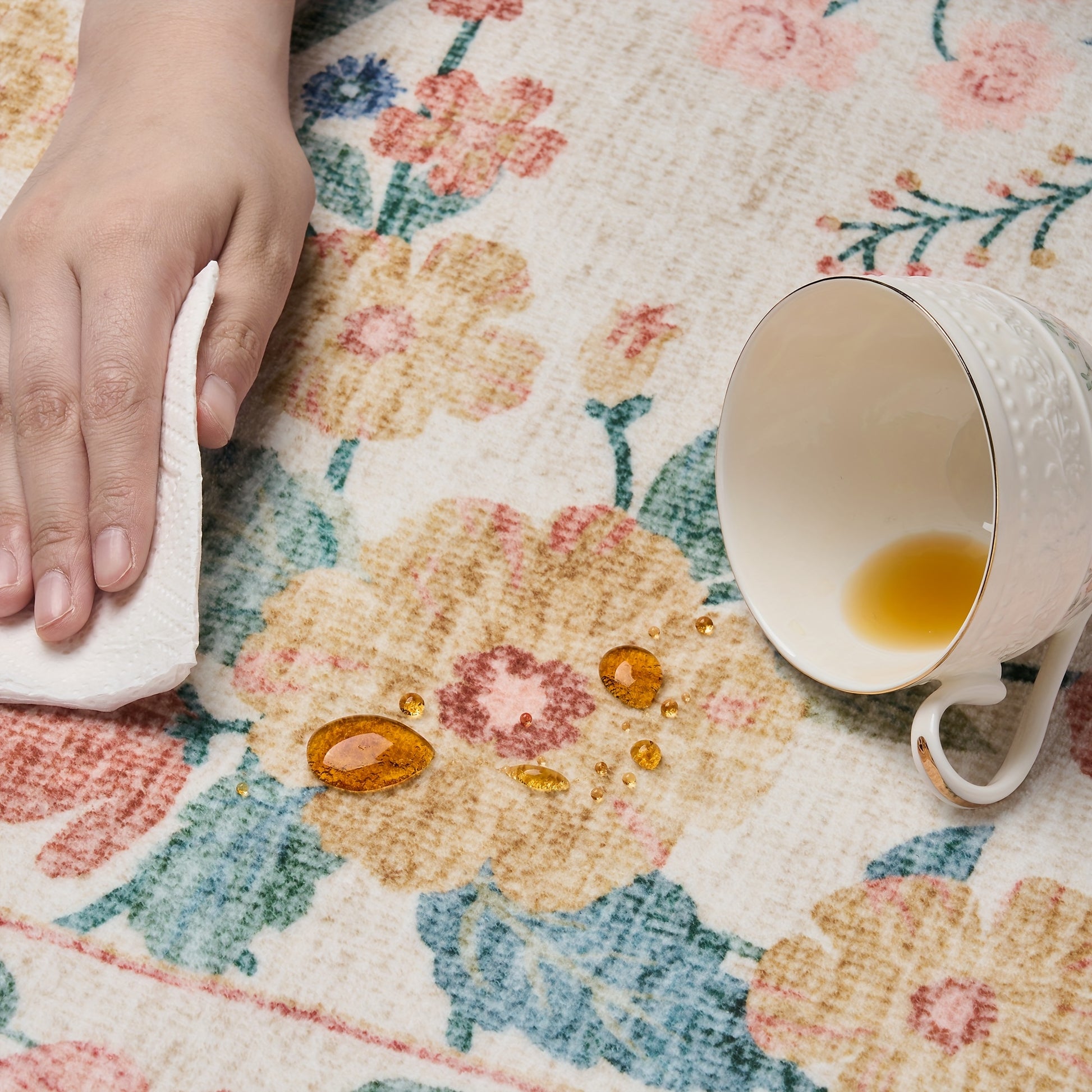 Key Features: This is a 1 - piece vintage floral mat. It is non - slip, machine washable, and has a low - pile design. It's suitable for various rooms like the kitchen, living room, bedroom, dining room, and playroom. Available in different sizes such as 2x3 entryway mat, 2x6 runner, and 8x10 large area indoor mat, and is kids and pets friendly with color options including beige, green, black, and pink.